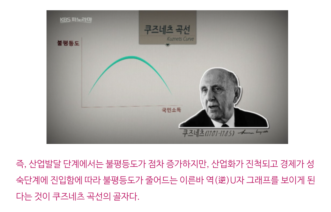 그다음 쿠즈네츠의 이론에 대해서 나온다.
